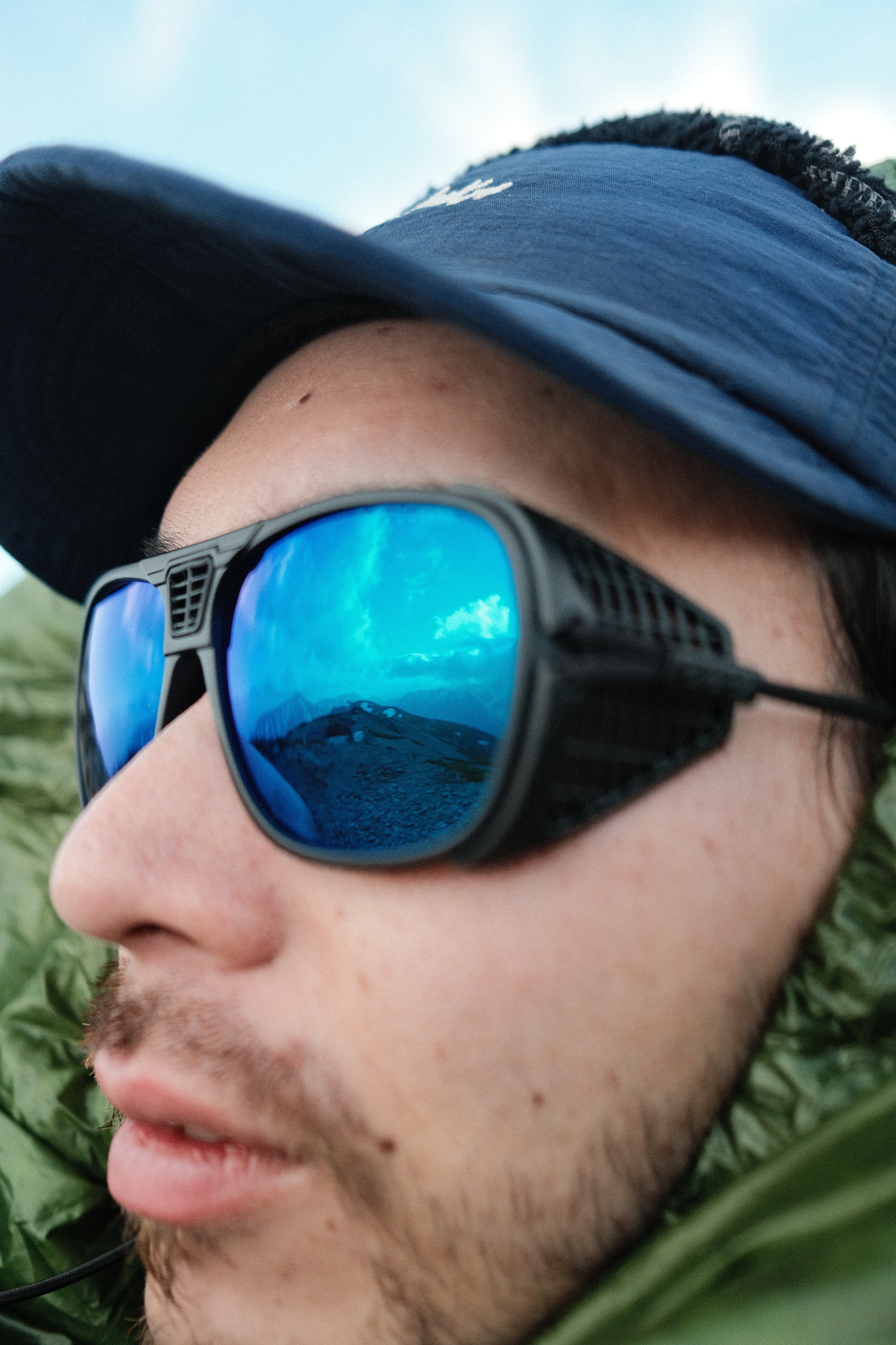 レンズはZeiss社製の傷のつきにくいポリアミドを使用した偏光レンズを採用。偏光膜を調べる機械を通しても圧倒的に歪みの少ない高級レンズと同レベルのテスト結果。紫外線から目を守る用途だけでなく稜線と空の境目がとても綺麗に見えたり、海や川の反射を防いだり、光のさらに奥を見ることができますよ。雪面や氷面の凹凸をしっかりと。より自然の中をディープに楽しむ相棒です。